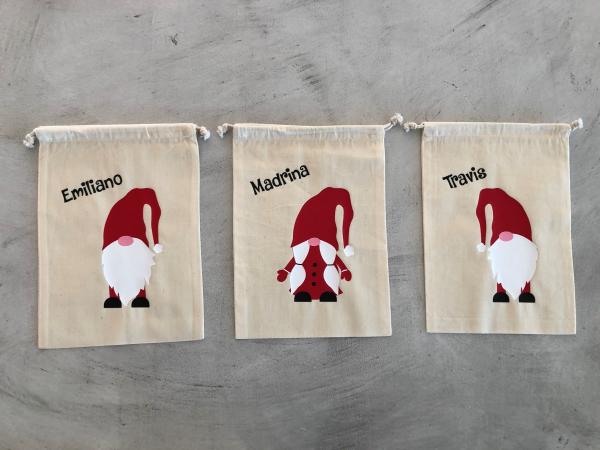 Die Gnomies und der Samichlaus werden in den abgebildeten Farben hergestellt, die Farbe der Schrift kann individuell gewählt werden.